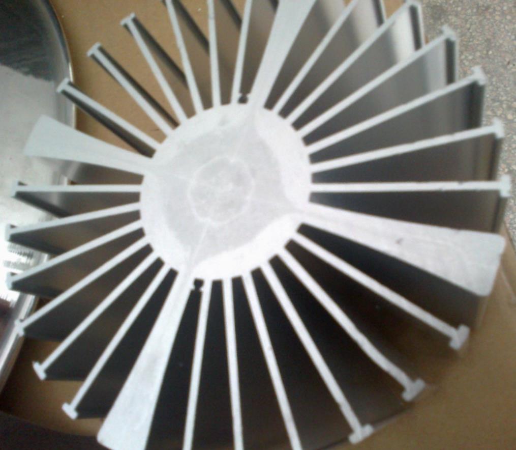 粗晶在擠壓過(guò)程中很難很快辨別但是經(jīng)過(guò)堿蝕后就會(huì)出現(xiàn)。呈不均勻的晶粒和花斑效果。嚴(yán)重影響型材的屈服強(qiáng)度和氧化效果。