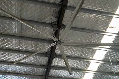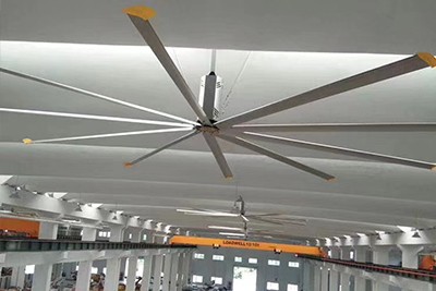 工業(yè)吊扇采用4-9米的鋁型材扇葉通過1.5KW的電機(jī)驅(qū)動大面積的微風(fēng),使得車間即實現(xiàn)了降溫又達(dá)到了通風(fēng)的效果。